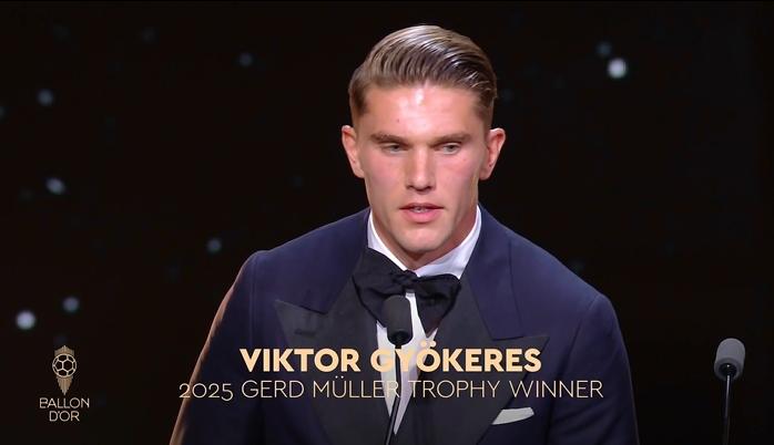 9月23日讯2025金球奖颁奖典礼今日举行,乔克尔斯荣获今年盖德穆勒奖! 2024/25赛季,乔克莱斯各项赛事出场58场,打进63球!